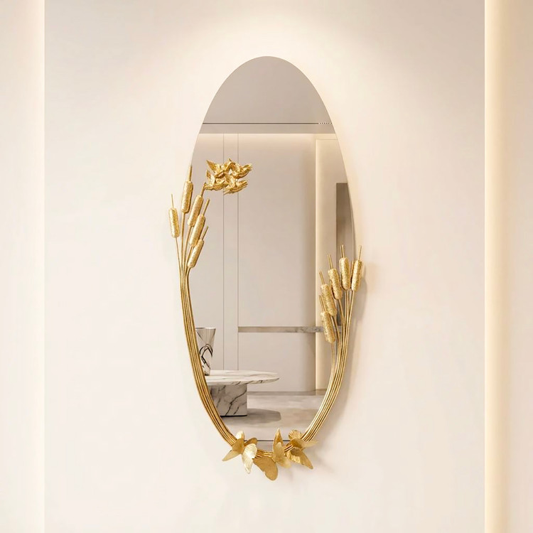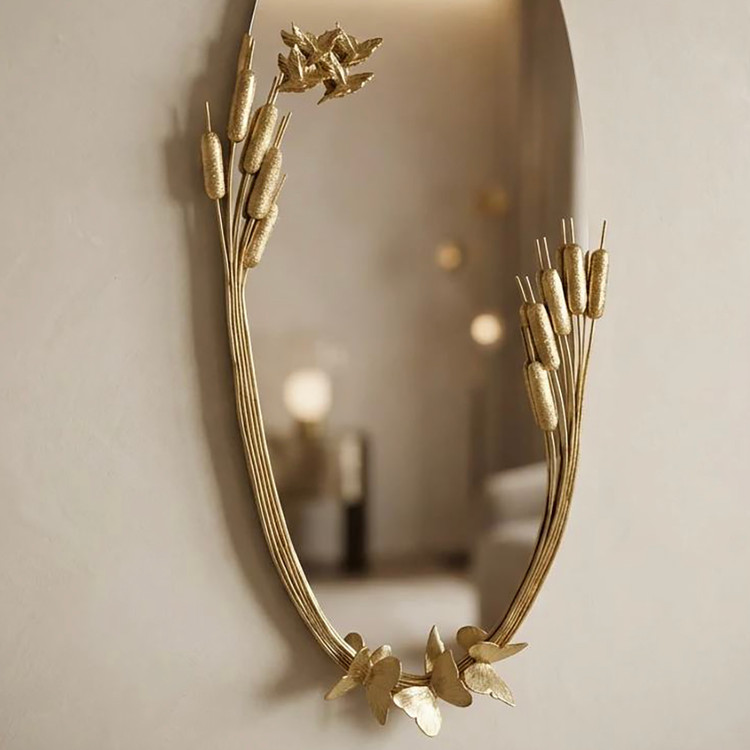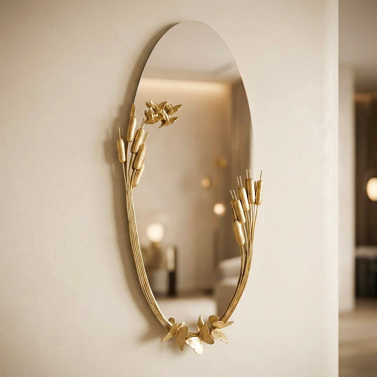 آینه قدی برنجی دستساز گالری عزیزی مدل پروانه و گل مرداب