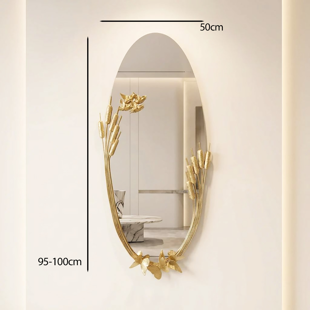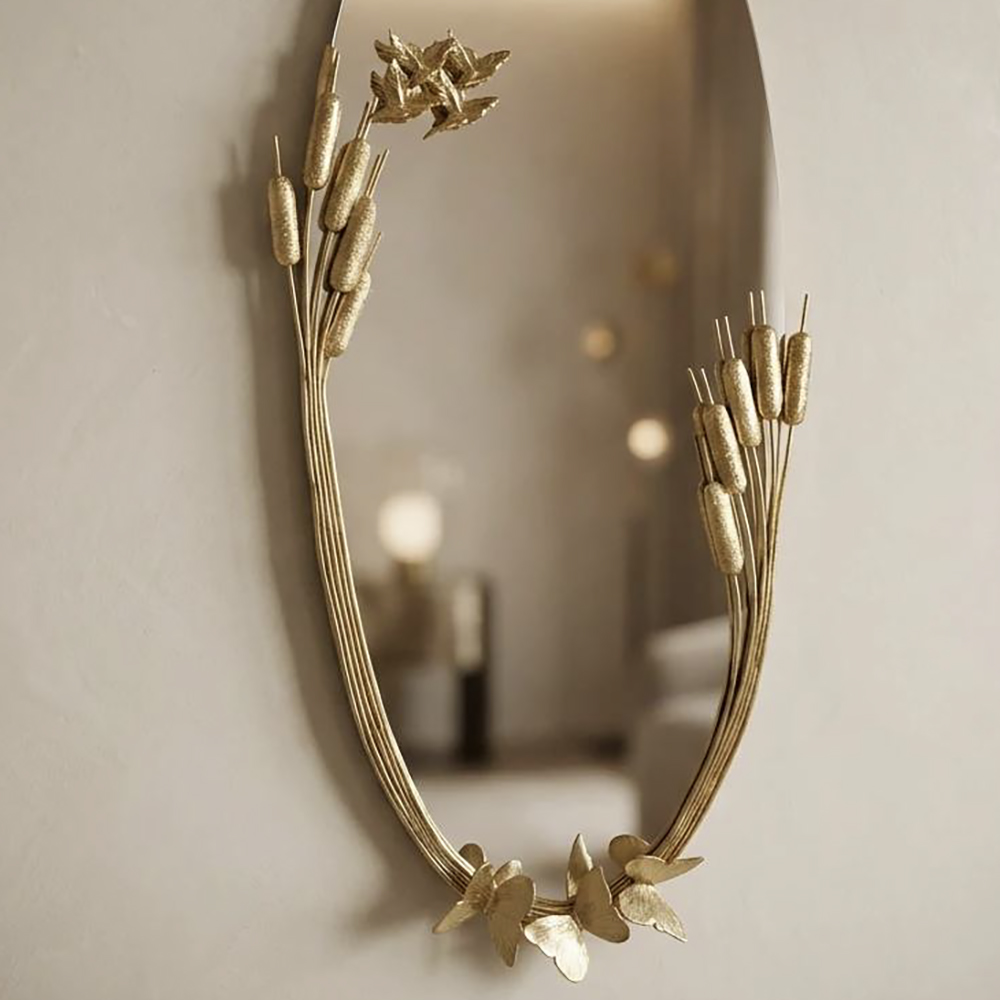 آینه قدی برنجی دستساز گالری عزیزی مدل پروانه و گل مرداب