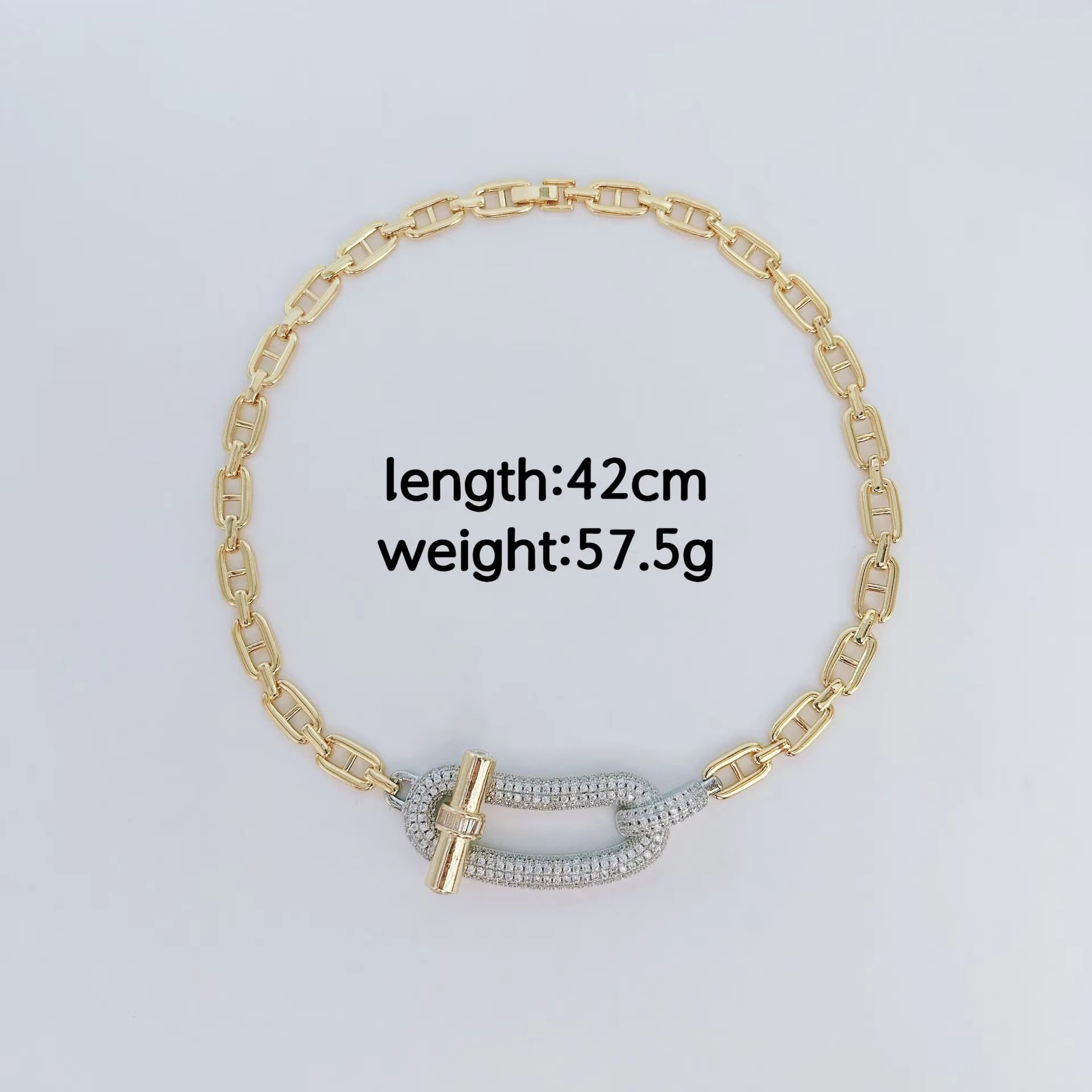 طول زنجیر این گردنبند حدود ۴۵ سانتیمتر بوده و دارای حلقههای اضافه برای تنظیم اندازه و کوتاه یا بلند کردن آن است.