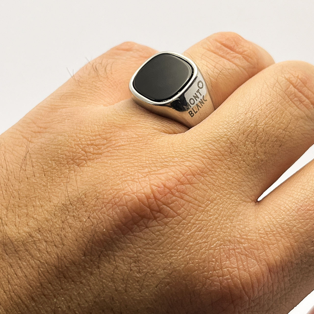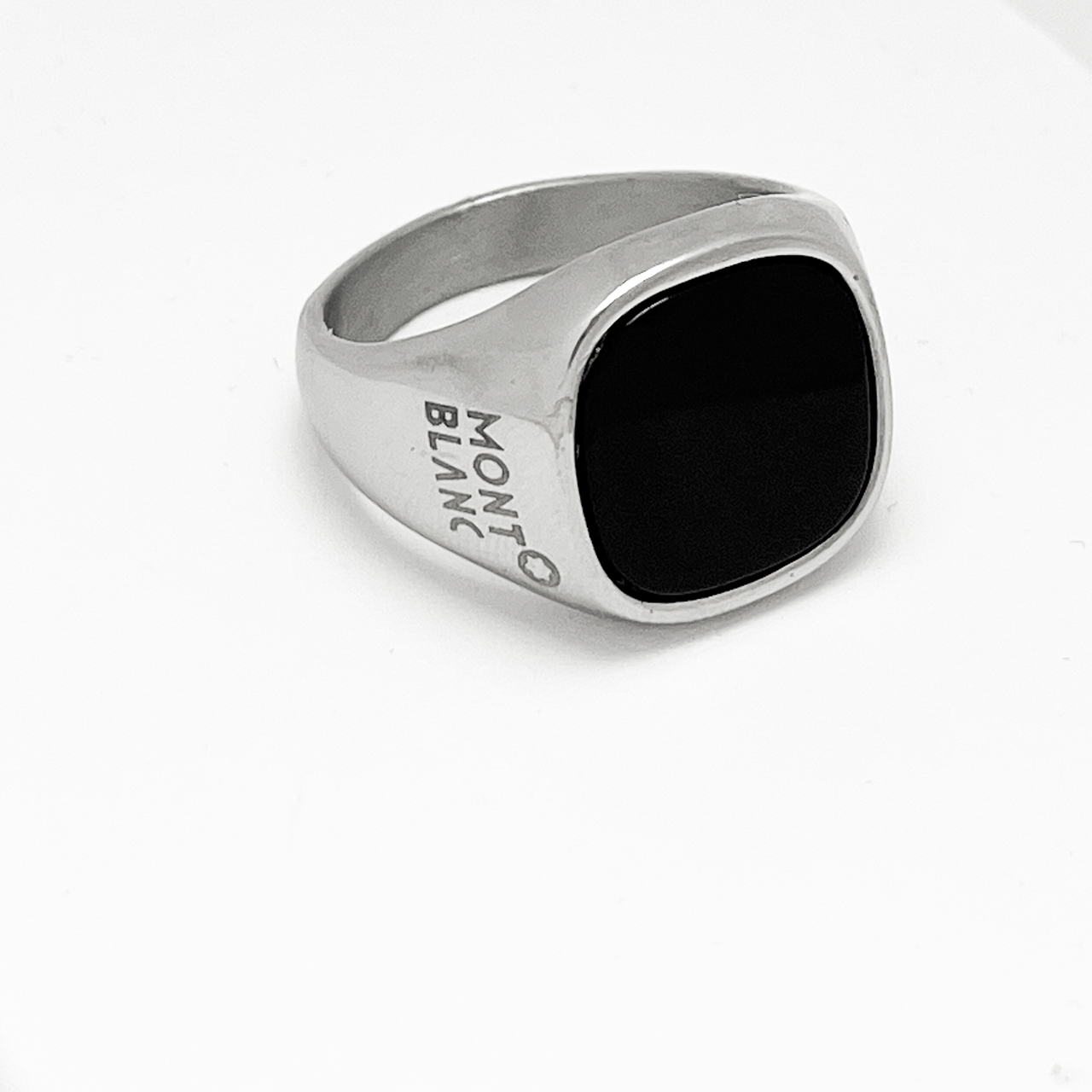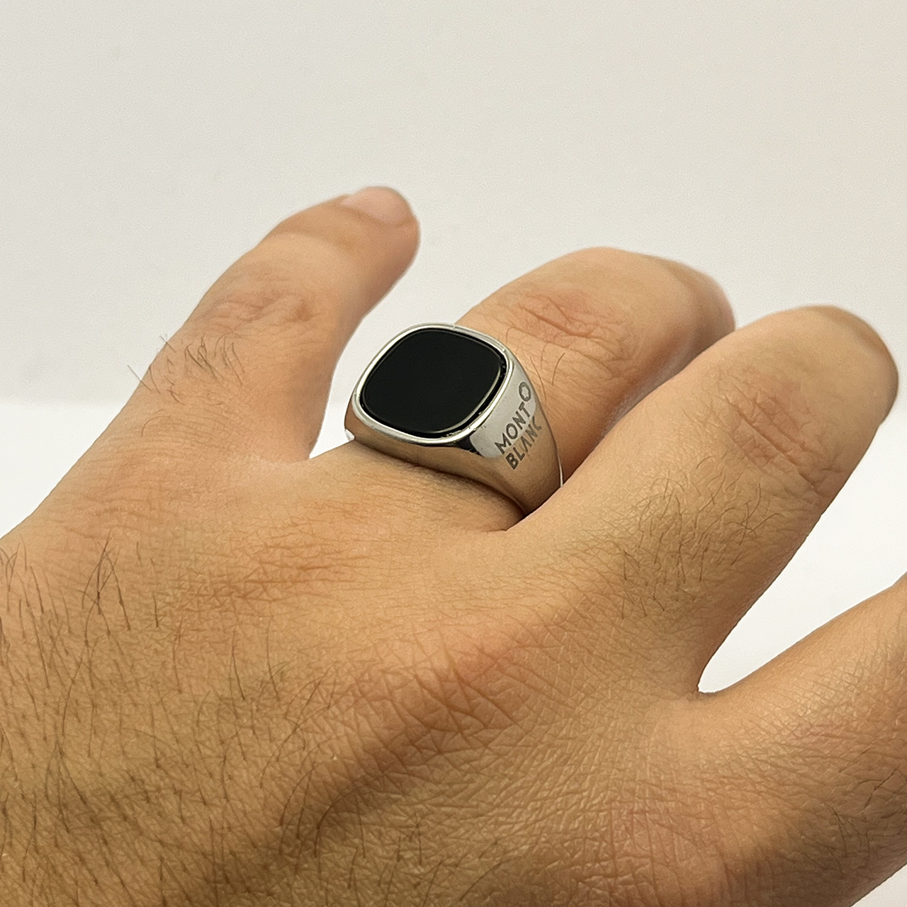 انگشتر مردانه استیل نقره ایی سنگ مشکی مون بلان ( mont blanc )