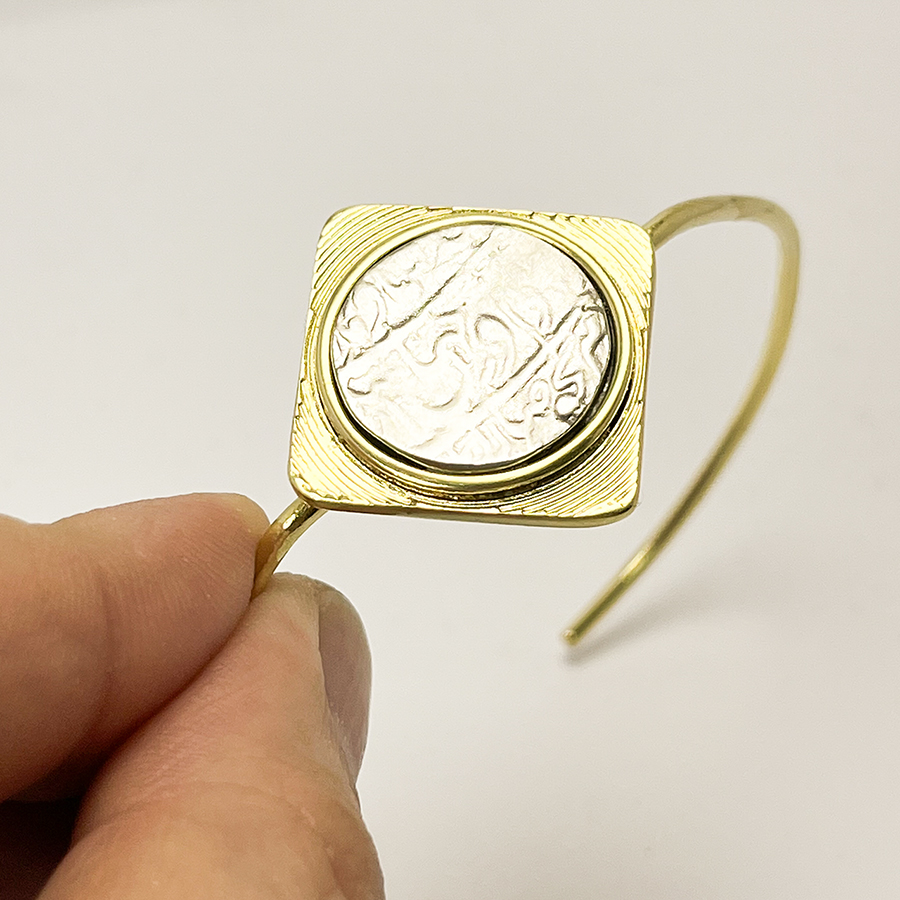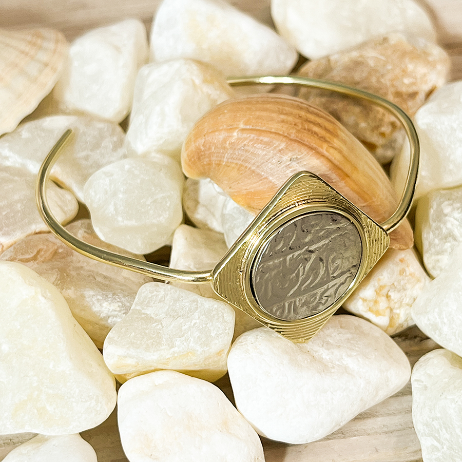 دستبند زنانه برنجی نقرهای مدل سکه شاهی قدیمی ، ترکیبی از ظرافت و استحکام است. این مدل با طراحی هنری الهامگرفته از سکه های قدیمی ، جلوهای مدرن و خاص دارد که روی مچ بهزیبایی مینشیند.