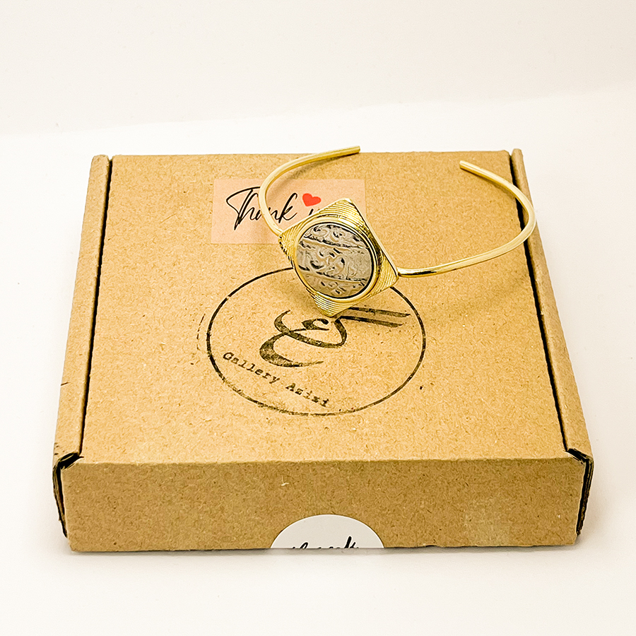 از جنس برنج خالص ساخته شده تا در برابر تغییر رنگ، خط و خش و حساسیت پوستی مقاوم باشد. این دستبند بدون قفل طراحی شده تا بهراحتی روی مچ قرار گیرد و قابل استفاده برای هر سایز دست باشد.