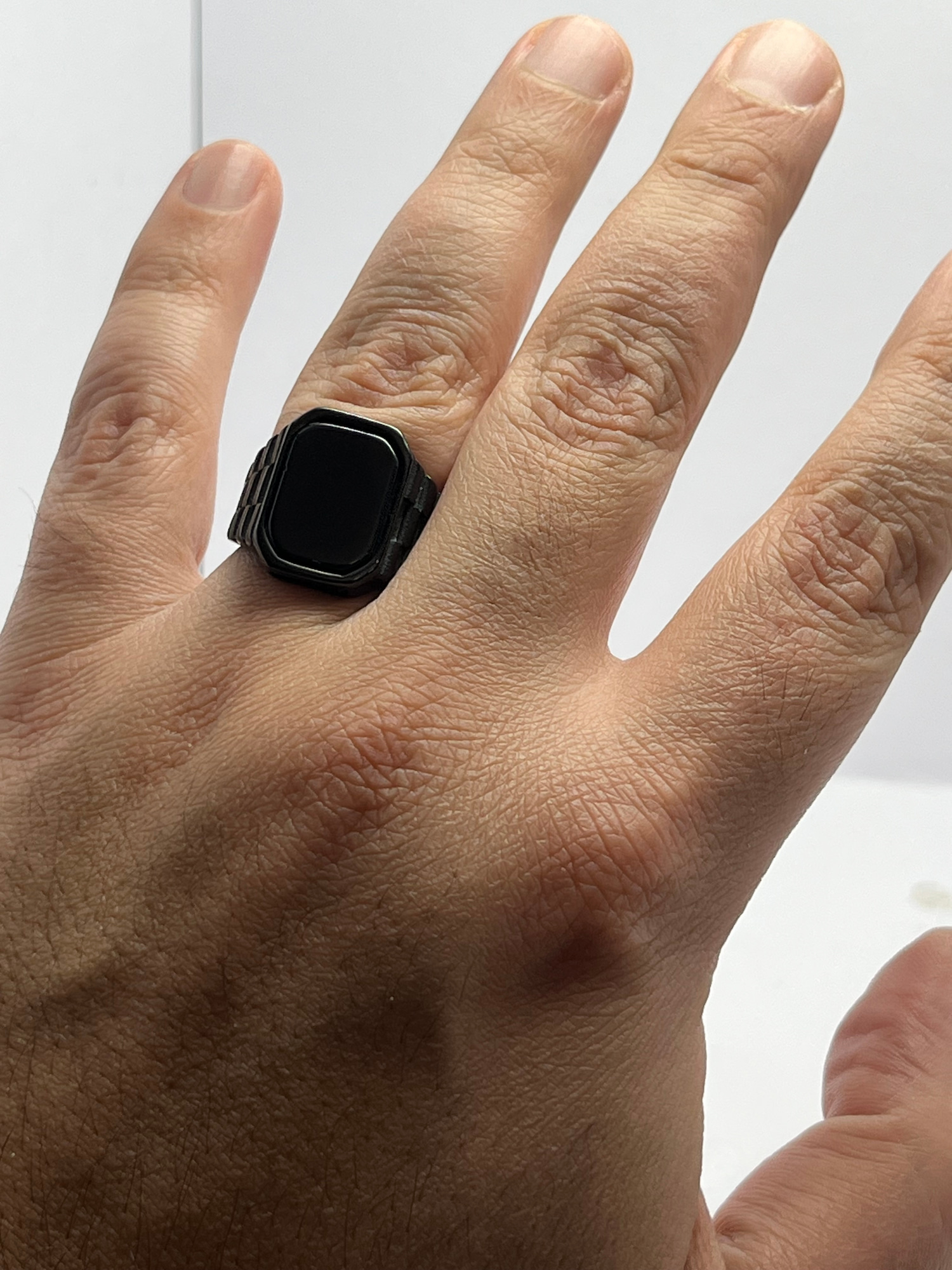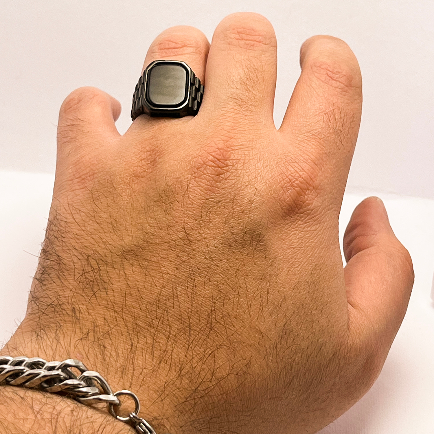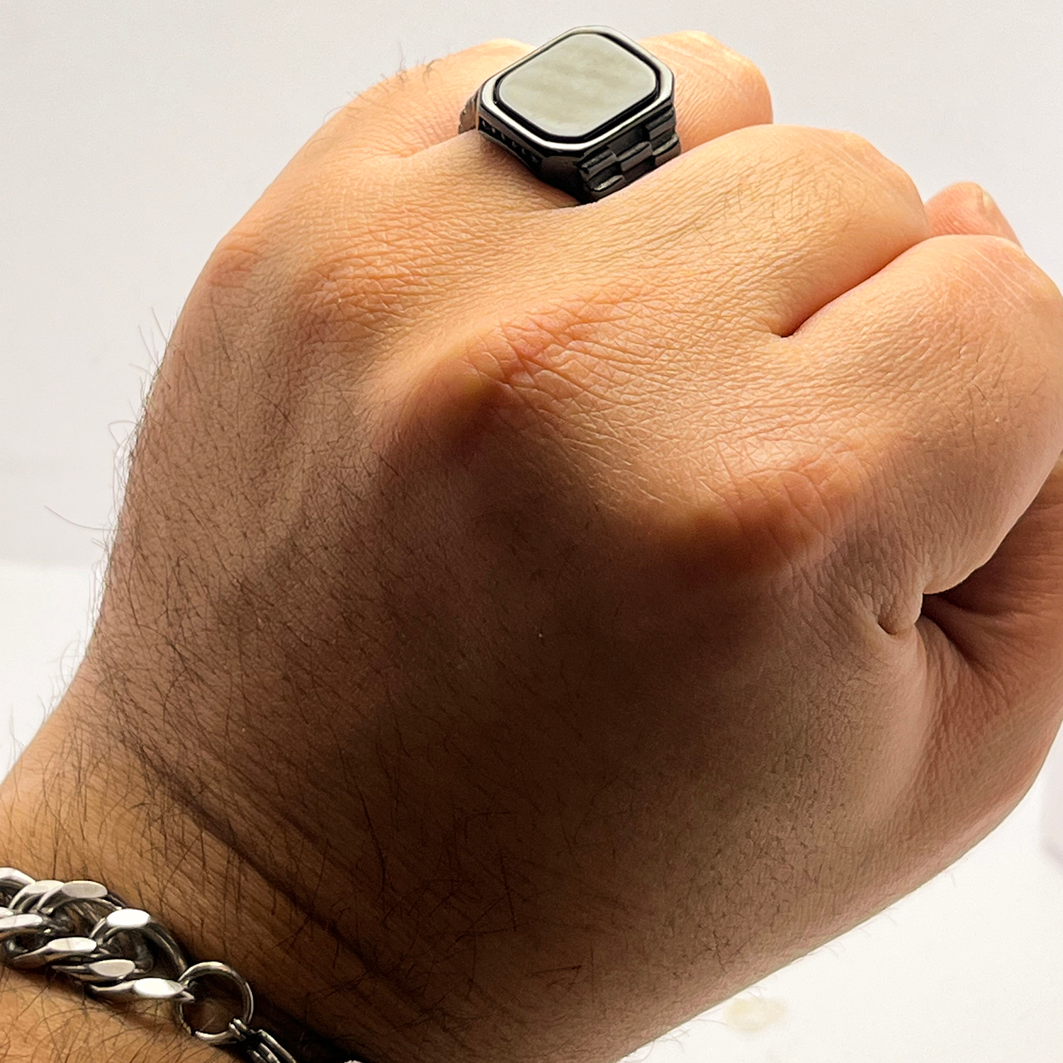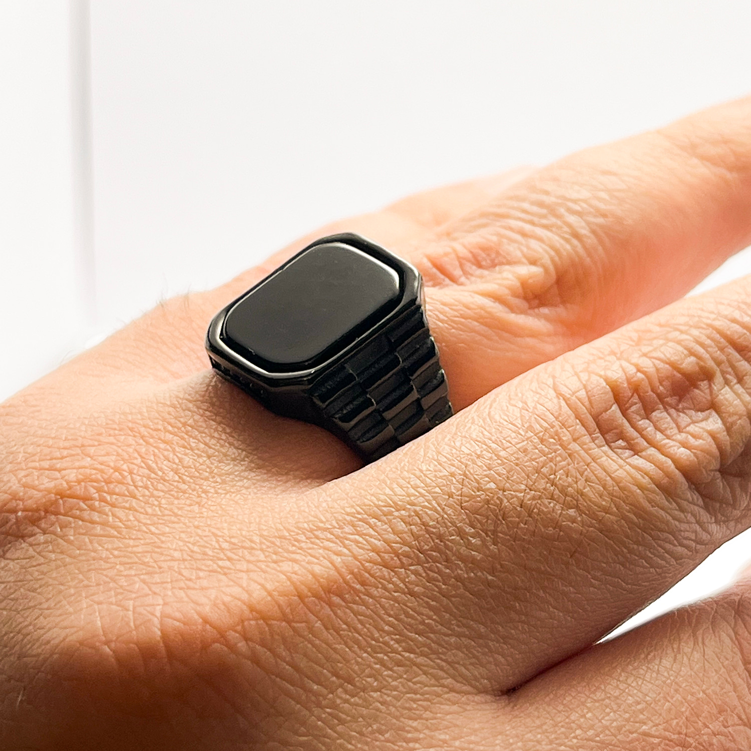 این انگشتر مردانه مشکی بهراحتی با استایل رسمی، اسپرت و روزمره ست میشود و انتخابی همهکاره است.