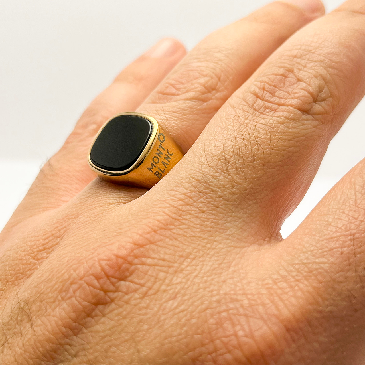 انگشتر مردانه استیل طلایی و سنگ مشکی مون بلان ( mont blanc ) | گالری عزیزی کپی