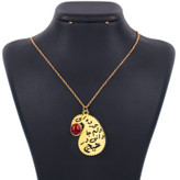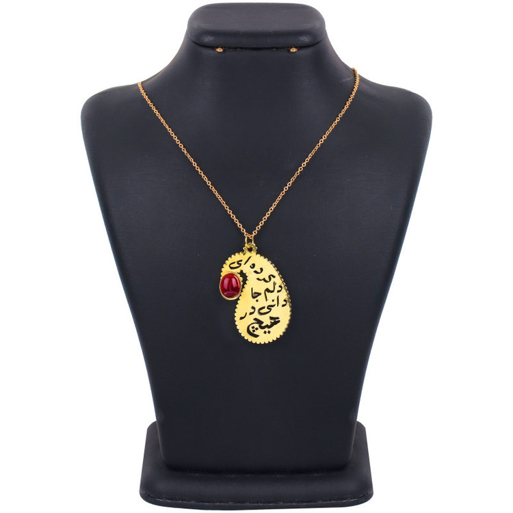 گردنبند زنانه گالری عزیزی مدل 14435 از جنس برنج و سنگ جید قرمز است . این گردنبند کاملا دستساز بوده و با تکنیک اره کاری جواهر ساخته شده است ، از طراحی تا ساخت آن توسط گروه هنری گالری عزیزی انجام شده است . و همین امر باعث گردیده کسانی که به دنبال کارهای خاص و منحصر به فرد هستند بتوانن انتخاب خوبی داشته باشند .