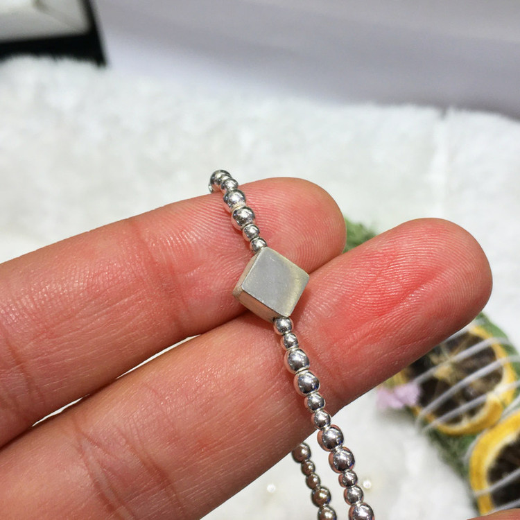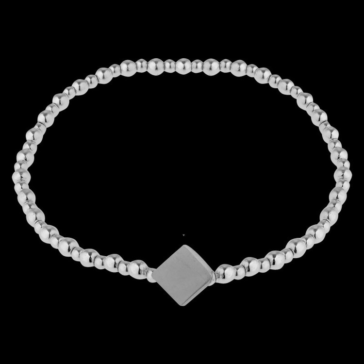 دستبند زنانه نقره طرح مربع مدل 15201 از جنس نقره با عیار 925 و سنگ های منجوقی ریز حدید ساخته شده است . این دستبند تشکیل شده از سنگ های حدیدهای نقره ایی و پلاک نقره با دست و به تکنیک اره کاری جواهر وسط دستبند که کار شده است . این دستبند بسیار ظریف و خاص است و گزینه بی همتایی برای خاص و شیک پسندان است . که استایل منحصر به فردی داشتن برایشان مهم میباشد