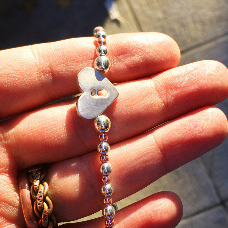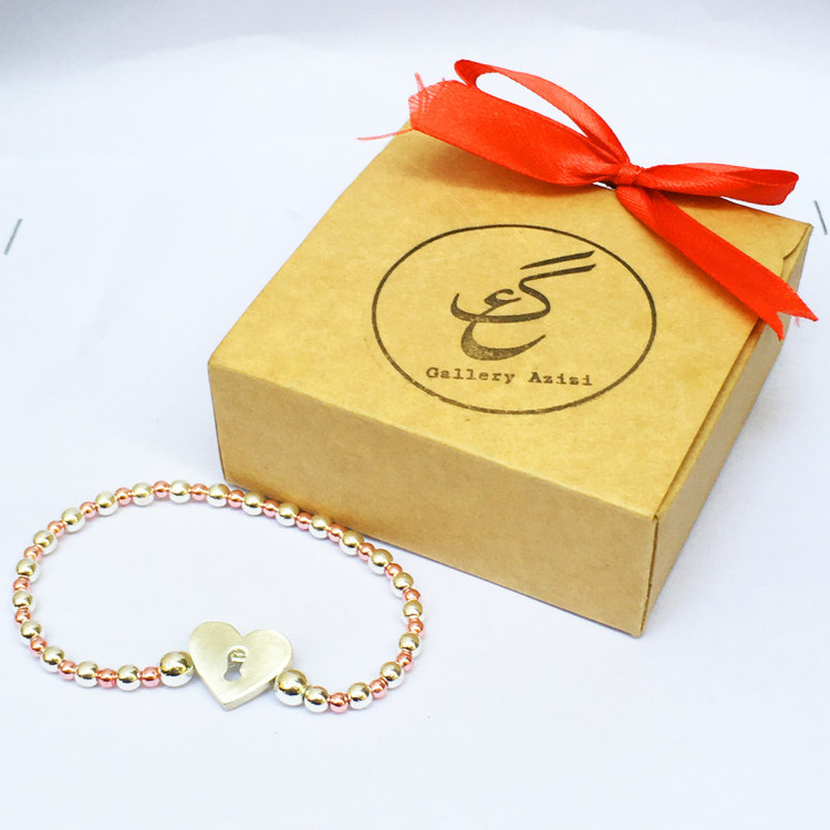 دستبند زنانه نقره گالری عزیزی طرح قلب مدل 15102 از جنس نقره با عیار 925 و سنگ های منجوقی ریز حدید ساخته شده است . این دستبند تشکیل شده از سنگ های حدیدهای نقره ایی و پلاک نقره که توسط گروه هنری گالری عزیزی با دست و به تکنیک اره کاری جواهر وسط دستبند که کار شده است . این دستبند بسیار ظریف و خاص است و گزینه بی همتایی برای خاص و شیک پسندان است . که استایل منحصر به فردی داشتن برایشان مهم میباشد