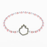 دستبند زنانه نقره گالری عزیزی طرح انار مدل 15109 از جنس نقره با عیار 925 و سنگ های منجوقی ریز حدید ساخته شده است . این دستبند تشکیل شده از سنگ های حدیدهای نقره ایی و پلاک نقره که توسط گروه هنری گالری عزیزی با دست و به تکنیک اره کاری جواهر وسط دستبند که کار شده است . این دستبند بسیار ظریف و خاص است و گزینه بی همتایی برای خاص و شیک پسندان است . که استایل منحصر به فردی داشتن برایشان مهم میباشد