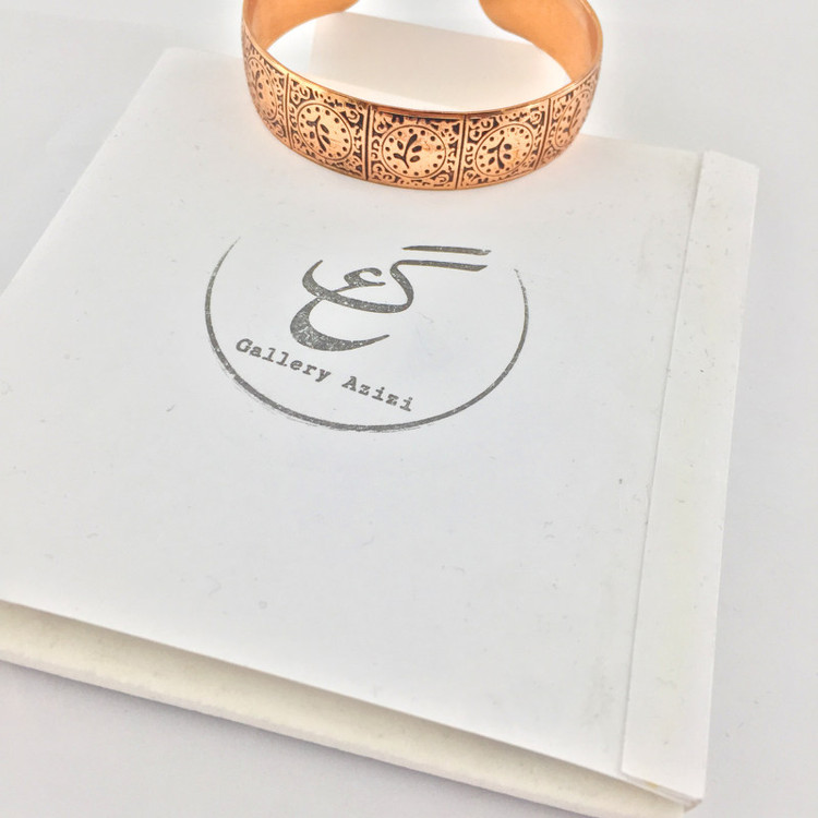 گالری عزیزی در زمینه ساخت زیورالات تلفیقی از فلز ، سنگ ، اشیا ، و لوازم دیگر چندین سال مشغول به فعالیت بوده . و در بین آثار این گالری تمام سلایق و تیپ ها میتوانند کالا مورد نظر خود را پیدا کنند دستبند مردانه و زنانه مدل gz14273 از جنس مس خالص است . این دستبند دست ساز با هنر دست هنرمندان گالری عزیزی به این طرح خاص رسیده است . و فلز مس طبق اطلاعاتی که وجود دارد برای اعصاب و بدن و همچنین عملکرد بهتر خون رسانی بدن تأثیرات مثبت زیادی دارد
