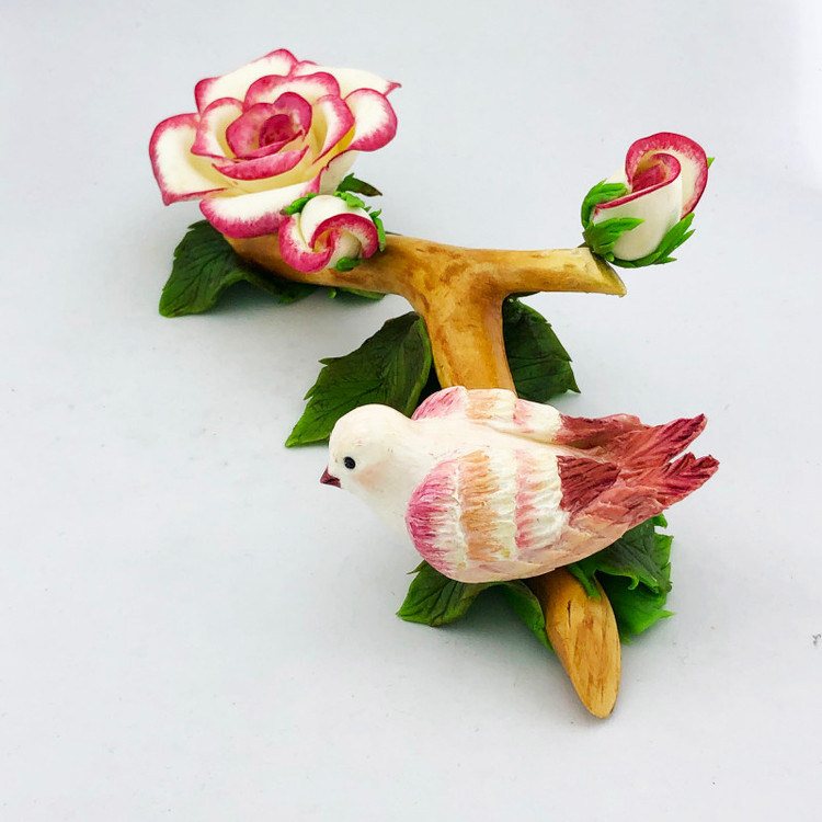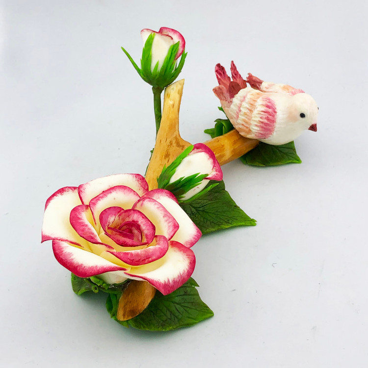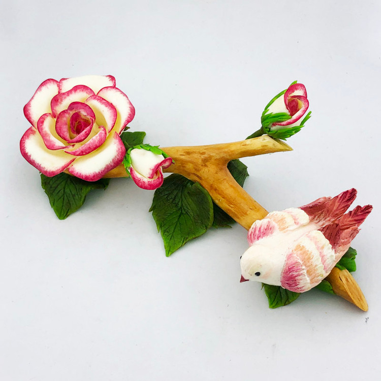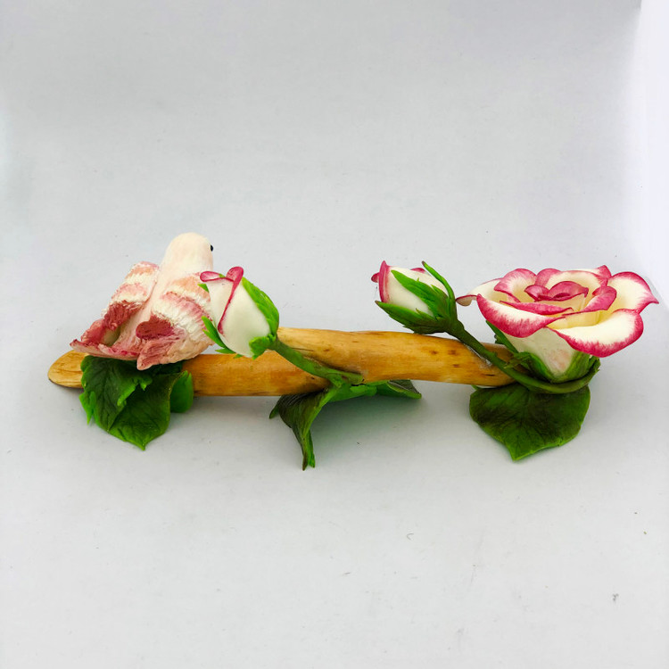 مجسمه دستساز فرزیا طرح پرنده و شاخه گل رز مدل GZ98573