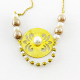 گردنبند زنانه گالری عزیزی طرح خورشید مدل gz15437 از جنس برنج و مروارید پرورشی است . این گردنبند از یک سنگ در روی گردنبند ساخته شده که از ایده تا اجرا توسط هنرمندان بوده است . طراحی این گردنبند بسیار خاص و منحصر به فرد است و گزینه بی همتایی برای عاشقان طرح های خاص که با دست ساخنه میشوند خواهد بود . و شما برای هر استایلی میتوانید از این گردنبند استفاده کنید برای براق نگه داشتن زیورالات برنجی بهتر است بشورید ، در اصطلاح گفته میشود فلز برنج فلز آبخوری هست به همین خاطر شستشوی برنج کمک بزرگی به براق موندن میکند و راهکار خانگی برطرف کردن کدری زیورالات برنجی تمیز کردن برنج با رب گوجه فرنگی است