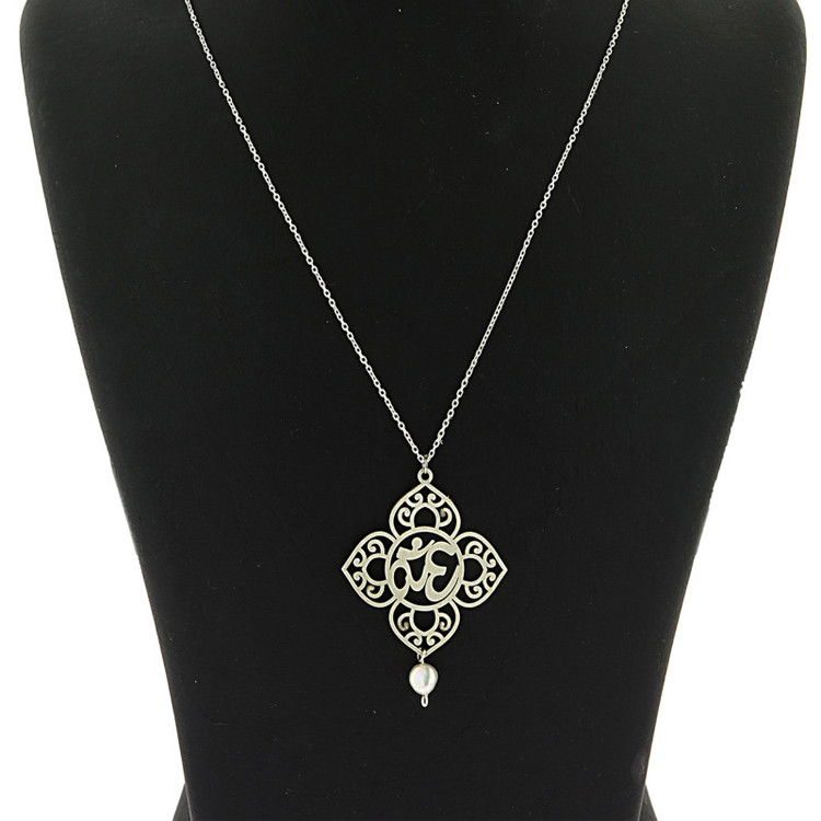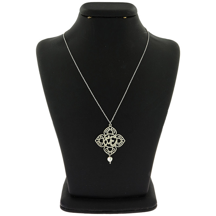 گردنبند زنانه نقره گالری عزیزی طرح اٌم مدل 14611 از جنس نقره با عیار 925 ساخته شده است . این گردنبند تشکیل شده از زنجیر نقره و پلاک طرح اٌم نقره با عیار 925 که تماما دستساز بوده و هنر اره کاری جواهر به این شکل رسیده است .. این گردنبند بسیار ظریف و خاص است و گزینه بی همتایی برای خاص و شیک پسندان است . که استایل منحصر به فردی داشتن برایشان مهم میباشد تعریف نماد اٌم در باور بسیاری از مردمان جهان باعث افزایش انرژی و صدای هستی مینامند