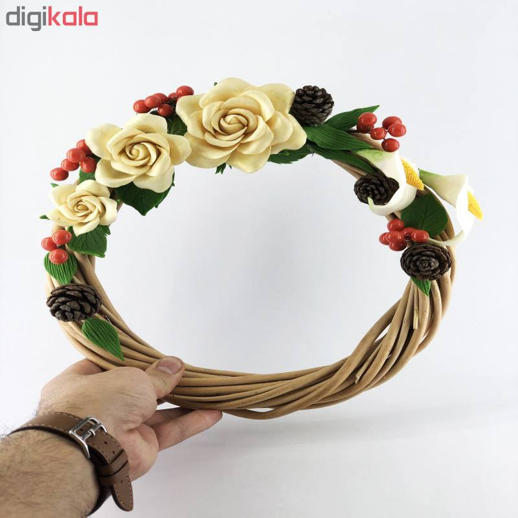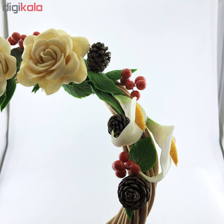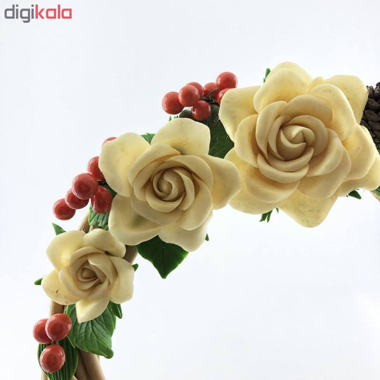 دیوارکوب دستساز گالری عزیزی طرح گل رز از جنس چوب و مواد مخصوص گلسازی ایتالیایی که در ایران به گل چینی معروف است . با هنر دست ساخته شده و یک دکوری بسیار زیبا و خاص و منحصر به فرد است که هنر شبیه سازی گل طبیعی در این انجام شده است . این حلقه گل مناسب دیوار و درب منازل است