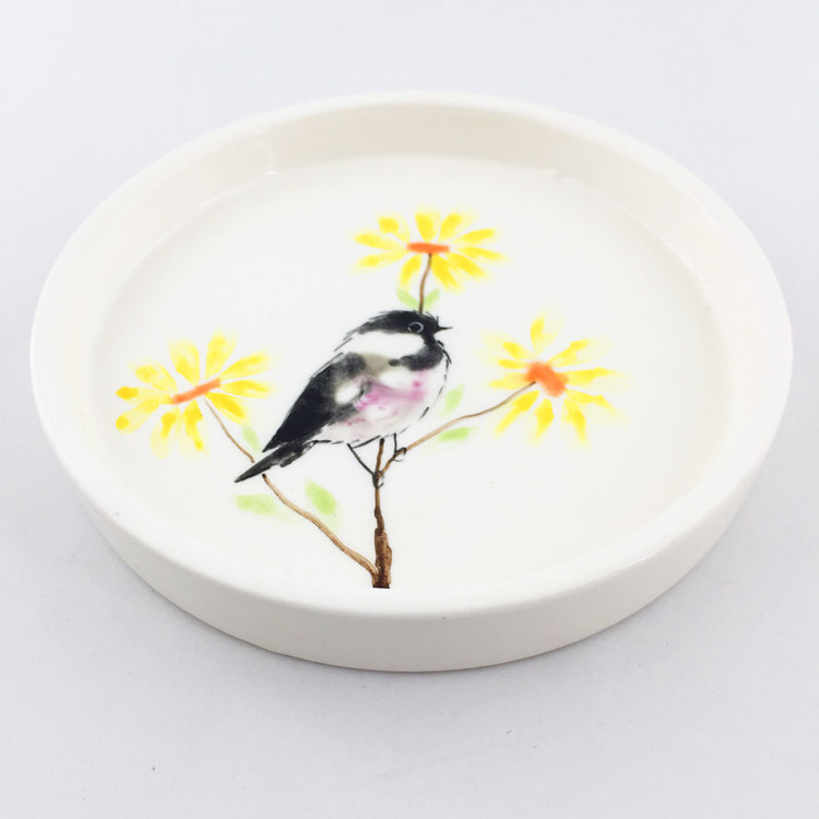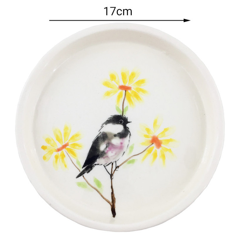 بشقاب سرامیکی طرح پرنده از جنس سرامیک میباشد و طرح پرنده روی آن با دست و ظرافت تمام توسط هنرمندان عزیز کشورمان نقاشی شده است . این بشقاب با طرح پرنده های مختلف برای کسانی که دنبال بشقاب دستساز و خاص برای مهمانی ها و مجالس خود هستند بسیار مناسب میباشد