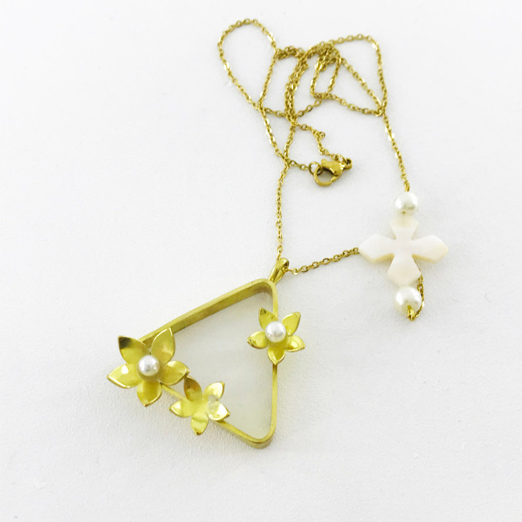 گردنبند زنانه گالری عزیزی طرح گل مدل gz15430 از جنس برنج و مروارید و صدف است . این گردنبند از یک سنگ در روی گردنبند ساخته شده که از ایده تا اجرا توسط هنرمندان بوده است . طراحی این گردنبند بسیار خاص و منحصر به فرد است و گزینه بی همتایی برای عاشقان طرح های خاص که با دست ساخنه میشوند خواهد بود . و شما برای هر استایلی میتوانید از این گردنبند استفاده کنید برای براق نگه داشتن زیورالات برنجی بهتر است بشورید ، در اصطلاح گفته میشود فلز برنج فلز آبخوری هست به همین خاطر شستشوی برنج کمک بزرگی به براق موندن میکند و راهکار خانگی برطرف کردن کدری زیورالات برنجی تمیز کردن برنج با رب گوجه فرنگی است