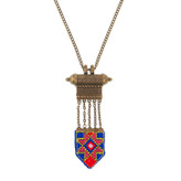 گردنبند زنانه سوزن دوزی مدل gz15001 از جمله کارهای سوزن دوزی بلوچ است ، هنری است منحصر به زنان بلوچ استان سیستان بلوچستان که ظرافت ویژه ایی آن ، سینه به سینه منتقل و ثبت در یونسکو گردید بابت هر گردنبند سوزن دوری چندین هفته هنرمندان وقت گذاشته اند . اثری که در پیش روی شماست حاصل تلاش زنان هنرمند و تلفیق طراحی کارشناسان مد در این زمینه است و همین موضوع باعث گردیده که کاری بسیار خاص و یونیک مناسب افراد سخت پسند و دوستداران کارهای خاص پدید آمده است . این کار قابل شستشو بوده و بهتر است با اتو به صورت مستقیم قرار نگیرد . تزئینات فلزی خاص این گردنبند از جنس ورشو است