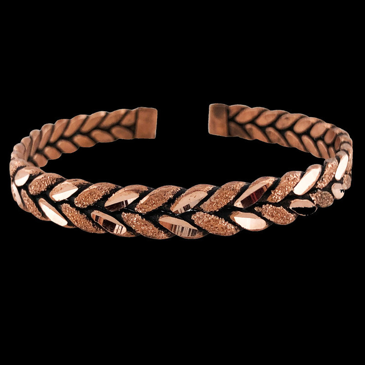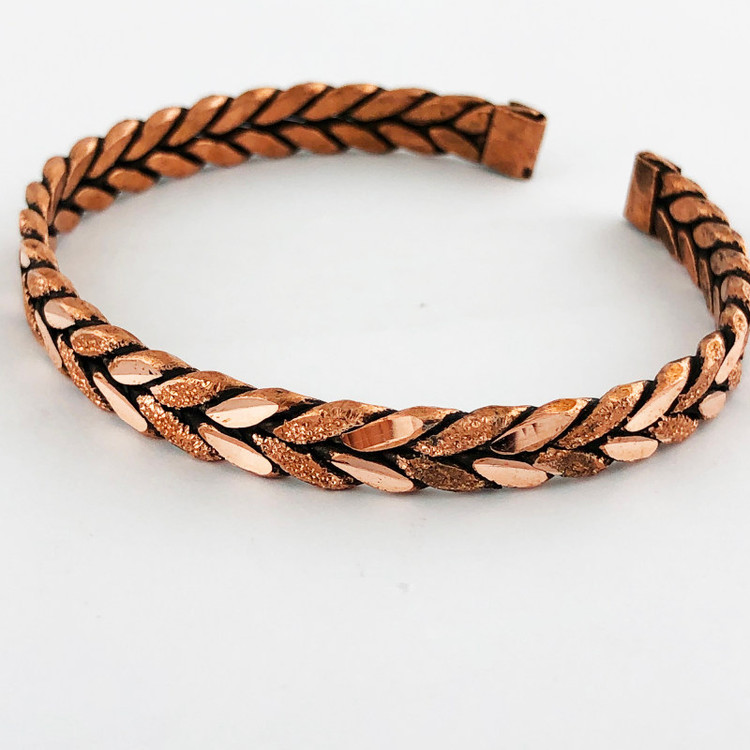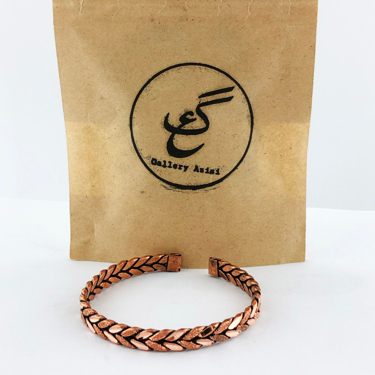 دستبند زنانه گالری عزیزی مدل gz99261 از جنس مس خالص و دستساز میباشد . در ساخت این دستبند تکنیک های خاصی در پرداخت آن استفاده شده و تمام پیچ ها و بافت ها با دست پدید آمده ، این دستبند مناسب کسانی است که همیشه به دنبال دستبند مسی خاص بودند و تیپی متفاوت همیشه مدنظرشان هست .