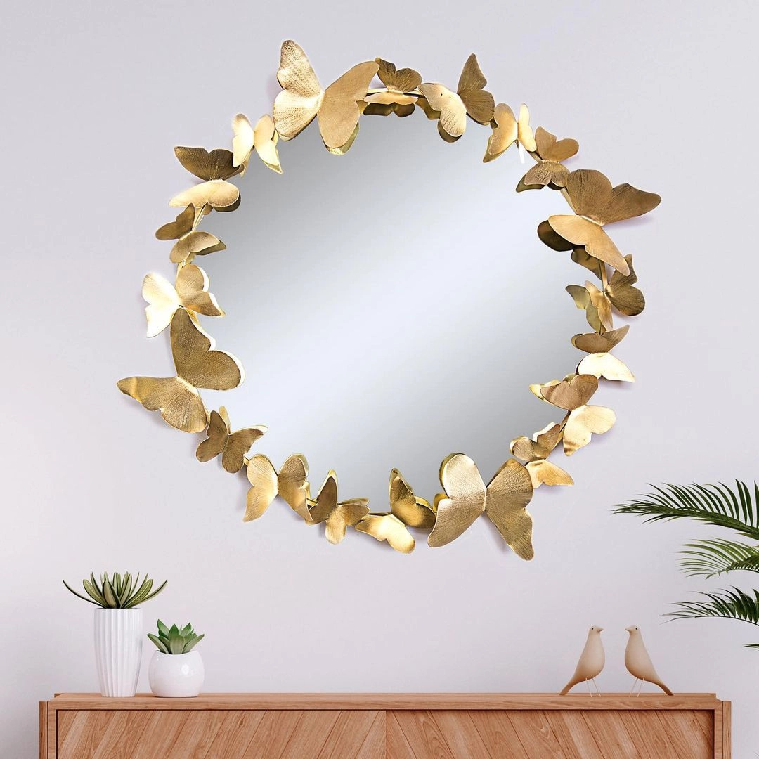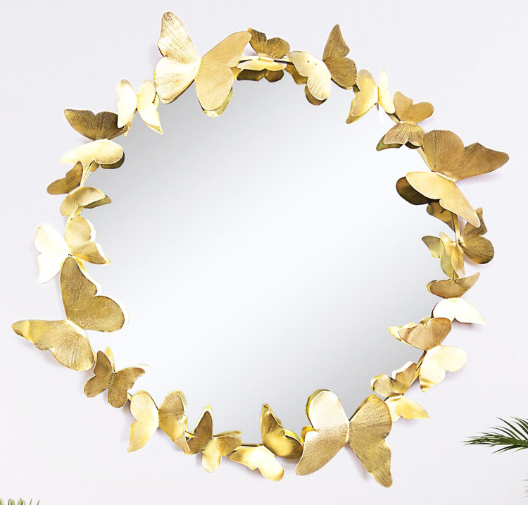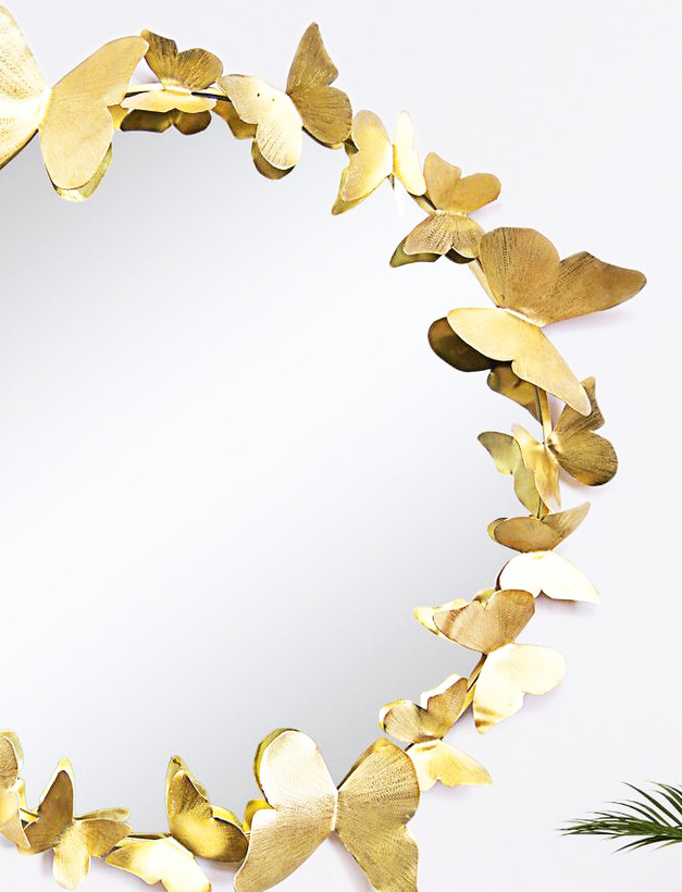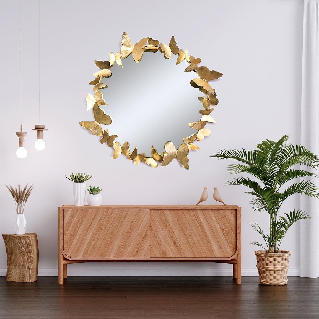آینه دیواری برنجی دستساز گالری عزیزی طرح پروانه ها