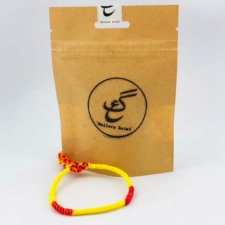 دستبند زنانه و مردانه گالری عزیزی از جنس نخ گلیم بافی میباشد و تماما با دست بافته شده است . این دستبند مناسب تمام سنین میباشد و مورد پسند همه تیپ های ( کلاسیک ، مدرن ، اسپرت ) میباشد