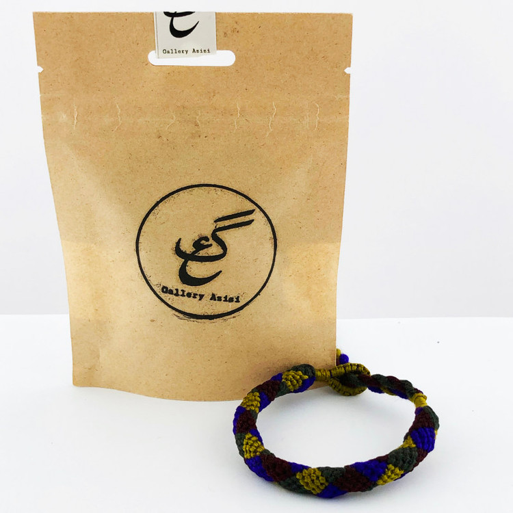 گالری عزیزی در زمینه ساخت زیورالات تلفیقی از فلز ، سنگ ، اشیا ، و لوازم دیگر چندین سال مشغول به فعالیت بوده ، پابند مدل 99120 از جنس نخ گلیم است و با تکنیک گلیم بافی توسط زنان هنرمند کشور عزیزمان بافته شده است . این پابند را به خاطر بند بلندی که دارد به عنوان دستبند هم قابلیت استفاده دارد .