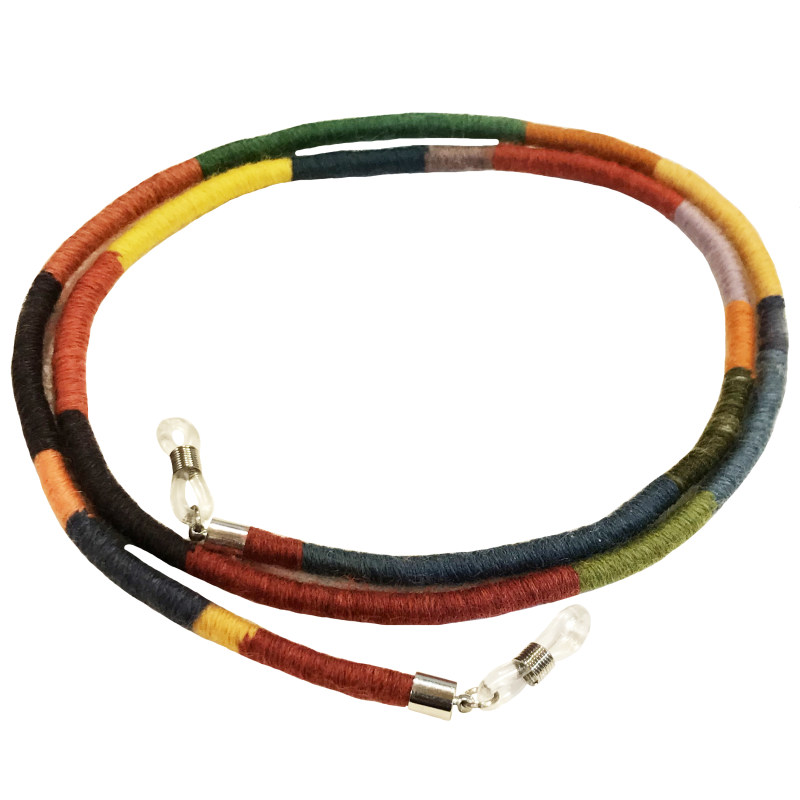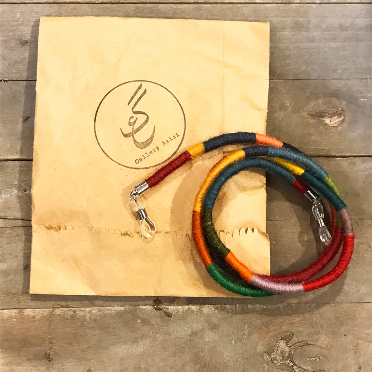 گالری عزیزی در زمینه ساخت زیورالات تلفیقی از فلز ، سنگ ، اشیا ، و لوازم دیگر چندین سال مشغول به فعالیت بوده ، بند عینک مدل 15658 از جنس نخ گلیم و فرش بافی است و با تکنیک گلیم بافی توسط زنان هنرمند کشور عزیزمان بافته شده است . این بند عینک به خاطر طراحی خاصی که دارد برای تمام تیپ های زنانه و مردانه قابل استفاده و ست کردن است .