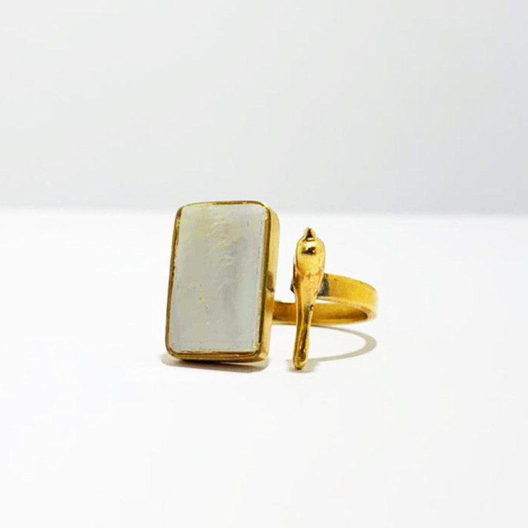 انگشتر زنانه گالری عزیزی مدل 14127 از جنس برنج و صدف است . این انگشتر کاملا دستساز بوده و با تکنیک جواهرسازی ساخته شده است ، از طراحی تا ساخت آن توسط گروه هنری گالری عزیزی انجام شده است . و همین امر باعث گردیده کسانی که به دنبال کارهای خاص و منحصر به فرد هستند بتوانن انتخاب خوبی داشته باشند .این انگشتر را به عنوان نیم بند هم میتوان استفاده کرد