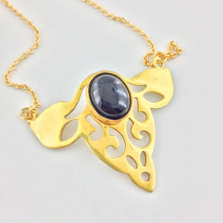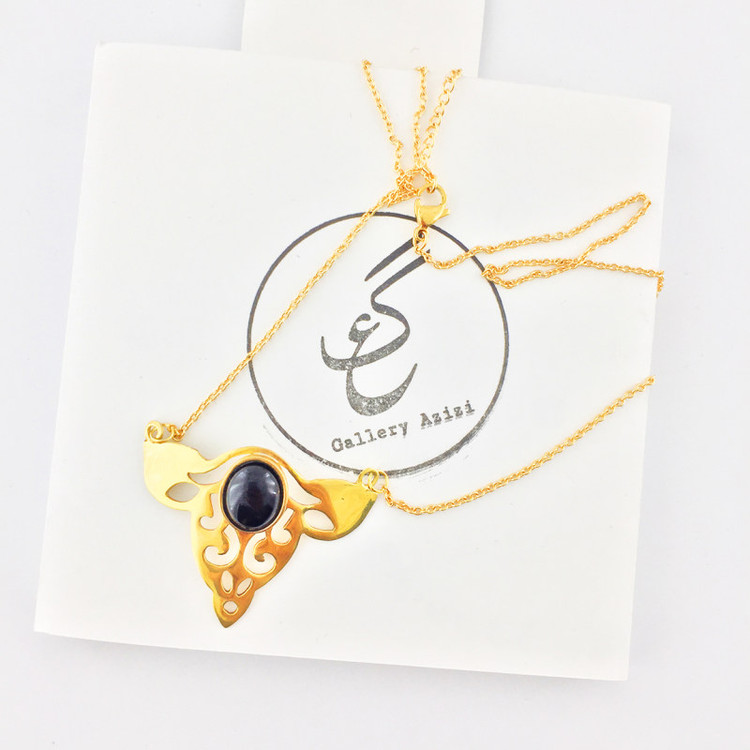 گردنبند زنانه گالری عزیزی مدل 14430 از جنس برنج و سنگ لاجورد است . این گردنبند کاملا دستساز بوده و با تکنیک اره کاری جواهر ساخته شده است ، از طراحی تا ساخت آن توسط گروه هنری گالری عزیزی انجام شده است . و همین امر باعث گردیده کسانی که به دنبال کارهای خاص و منحصر به فرد هستند بتوانن انتخاب خوبی داشته باشند .زنجیر این گردنبند با خلاقیت درست شده که از سادگی معمول را ندارد و با مروارید تلفیق شده است .