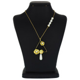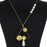 گردنبند زنانه گالری عزیزی طرح مثلث مدل 15429 از جنس برنج و مروارید است و با هنر اره کاری دستی ساخته شده است و ماشین در ساخت آن دخالت نداشته است و هنر هنرمندان گالری عزیزی است که در ساخت این گردنبند از تکنیک جواهرسازی در برنج استفاده شده است که باعث جلب نظر خاص پسندان و کسانی که دنبال کارهای یونیک هستند میشود زنجیر این گردنبند از استیل و مروارید است که باعث خاص تر شدن کار گردیده است