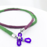 گالری عزیزی در زمینه ساخت زیورالات تلفیقی از فلز ، سنگ ، اشیا ، و لوازم دیگر چندین سال مشغول به فعالیت بوده ، بند عینک مدل 15666 از جنس نخ گلیم و فرش بافی است و با تکنیک گلیم بافی توسط زنان هنرمند کشور عزیزمان بافته شده است . این بند عینک به خاطر طراحی خاصی که دارد برای تمام تیپ های زنانه و مردانه قابل استفاده و ست کردن است .