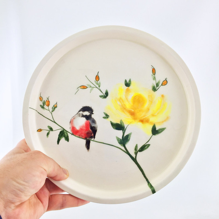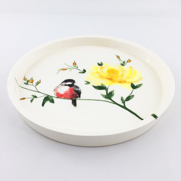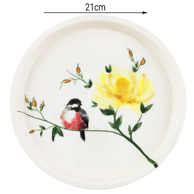 بشقاب سرامیکی طرح پرنده از جنس سرامیک میباشد و طرح پرنده روی آن با دست و ظرافت تمام توسط هنرمندان عزیز کشورمان نقاشی شده است . این بشقاب با طرح پرنده های مختلف برای کسانی که دنبال بشقاب دستساز و خاص برای مهمانی ها و مجالس خود هستند بسیار مناسب میباشد