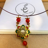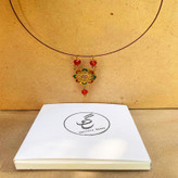 گردنبند چوکر گالری عزیزی مدل gz14525 از جنس برنج و سنگ و میناکاری است . این چوکر با قفل و حلقه نازکی که دارد گزینه مناسبی برای کسانی است که از زنجیر بزرگ و سنگین خوششان نمیاید . طراحی اسلیمی گردنبند چوکر گالری عزیزی برای بانوان خاص پسند ساخته شده است .