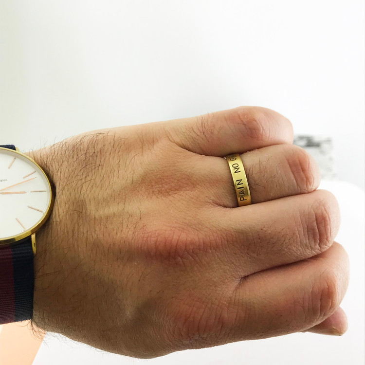 انگشتر مردانه گالری عزیزی طرح نوشته مدل NO PAIN NO GAIN