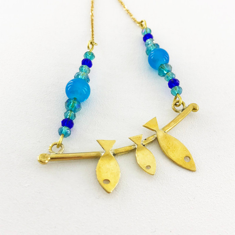 گردنبند زنانه گالری عزیزی طرح ماهی مدل gz15443 از جنس برنج و سنگ است . این گردنبند از یک سنگ در روی گردنبند ساخته شده که از ایده تا اجرا توسط هنرمندان بوده است . طراحی این گردنبند بسیار خاص و منحصر به فرد است و گزینه بی همتایی برای عاشقان طرح های خاص که با دست ساخنه میشوند خواهد بود . و شما برای هر استایلی میتوانید از این گردنبند استفاده کنید برای براق نگه داشتن زیورالات برنجی بهتر است بشورید ، در اصطلاح گفته میشود فلز برنج فلز آبخوری هست به همین خاطر شستشوی برنج کمک بزرگی به براق موندن میکند و راهکار خانگی برطرف کردن کدری زیورالات برنجی تمیز کردن برنج با رب گوجه فرنگی است